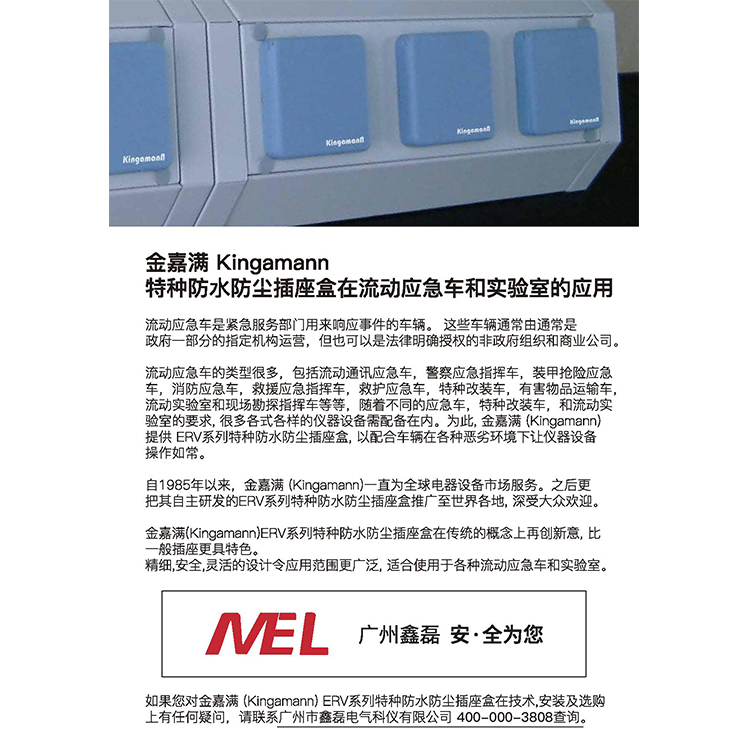 自1985年以來(lái),金嘉滿Kingamann一直為全球電器設(shè)備市場(chǎng)服務(wù)。之后更把其自主研發(fā)的ERV系列特種防水防塵插座盒推廣至世界各地, 深受大眾歡迎。
